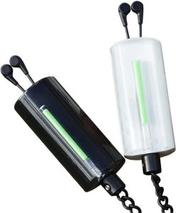Speciaal voor de liefhebbers van traditionele hangers en absolute tackle tarts zijn er de Black & White beet indicators. Deze hangers worden gemaakt in vier verschillende maten en worden geleverd met extra gewichten om zo verschillende situaties af te dekken. De body, die in zwart en wit verkrijgbaar is heeft een transparante voorzijde en biedt plaats aan een (niet inbegrepen) beta light. Daarnaast is de lijnclip naar wens te verstellen. Draai eenvoudig aan de ketting connector aan de onderzijde van de body om deze losser of vaster te zetten. Hierdoor is de Black & White hanger zowel met dunne als met dikke lijnen te gebruiken. Voor de bevestiging onder de beetmelder is er gebruik gemaakt van een mooi afgewerkte zwarte hockeystick die tevens plaats bied aan Stow Bobbins.