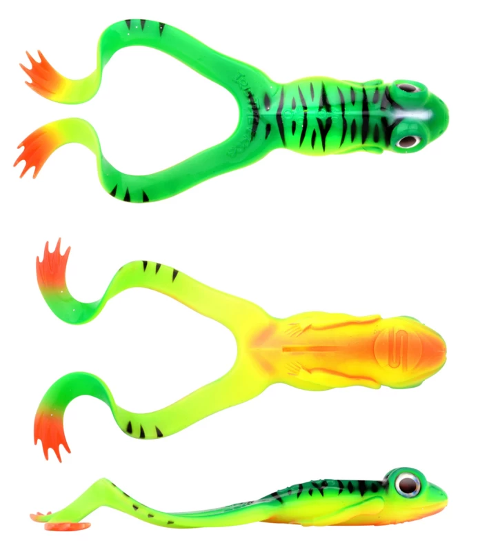 Een realistische imitatie van een echte kikker in softbaituitvoering. IRIS The Frog heeft een superverleidelijke actie, waarbij de pootjes zelfs bij een lage inhaalsnelheid al beginnen te wapperen. Dankzij de haakmaatindicatoren op de rug is The Frog uiterst eenvoudig te riggen, bijvoorbeeld in combinatie met onze SPRO jigkoppen (#6/0 of #8/0). Daarnaast is deze realistische kikkerimitatie uitermate geschikt om weedless te vissen op een forse Gamakatsu Offset-/ Wormhaak. IRIS The Frog is 12cm lang, weegt 20 gram en is gemaakt van extra degelijk materiaal. Verkrijgbaar in bewezen designs.