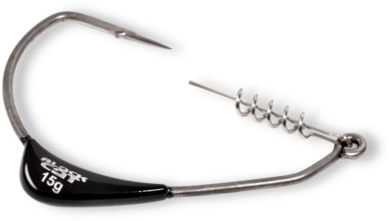 De Mega Offset Hook wordt standaard geleverd in een maat 12/0 en in drie gewichten: 10, 15 en 20 gram. De plaatsing van het lood op de haaksteel werkt als een kiel en verleent het kunstaas een stabiele beweging in het water. Stop je met binnendraaien dan valt het kunstaas niet simpelweg met de kop naar voren op de bodem, maar tuimelt het langzaam tot vlak voor de bek van de meerval naar beneden.