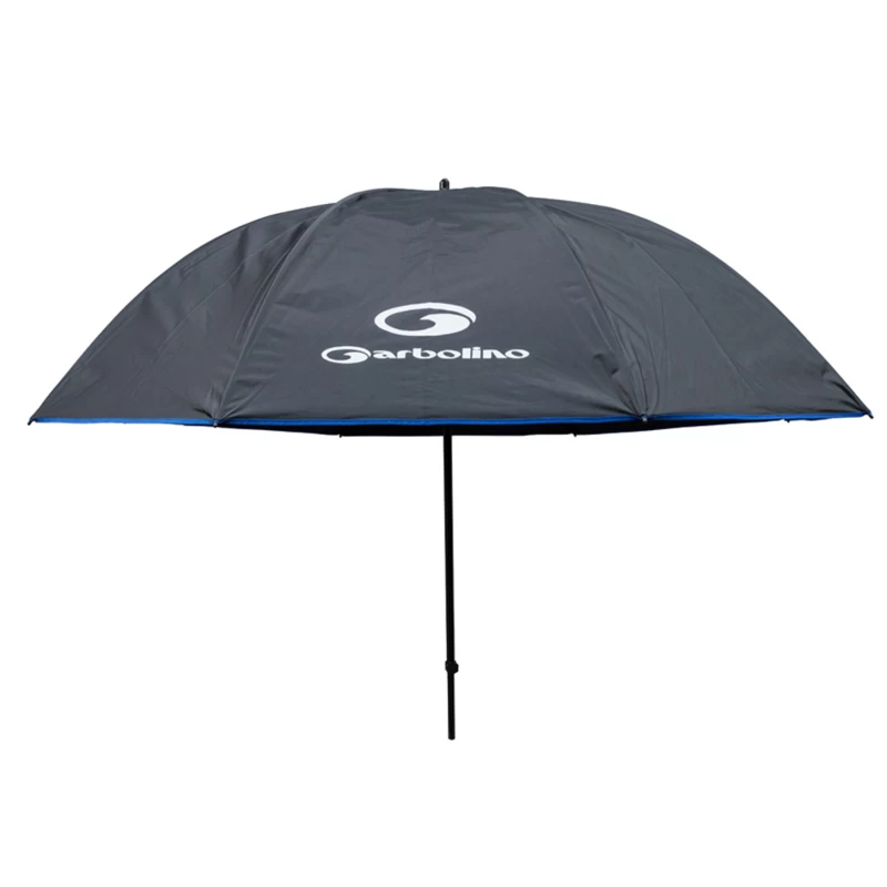 Upscale Paraplu bestaat uit ribben van glasvezel voor een stevige structuur. Deze paraplu uit de Essential-serie is verstelbaar en verplaatsbaar. Het meet 2,50 m in diameter. Zwarte kleur met het Garbolino-logo.